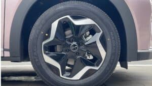 Xe sử dụng bộ mâm hợp kim hai tông màu độc đáo, với thiết kế hình ngôi sao cách điệu. Phần bên trong được sơn đen mạnh mẽ, viền ngoài phay sáng nổi bật, kích thước 16 inch vừa vặn, góp phần hoàn thiện diện mạo thể thao và cuốn hút cho mẫu xe này.