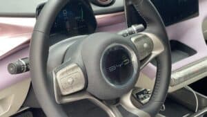 Bước vào khoang lái, BYD Dolphin gây ấn tượng với vô lăng bọc da dạng 3 chấu vát đáy, tích hợp các phím bấm điều khiển chức năng tiện lợi. Phía sau vô lăng là bảng đồng hồ kỹ thuật số kích thước 5 inch, hiển thị rõ nét và chính xác các thông số vận hành của xe.